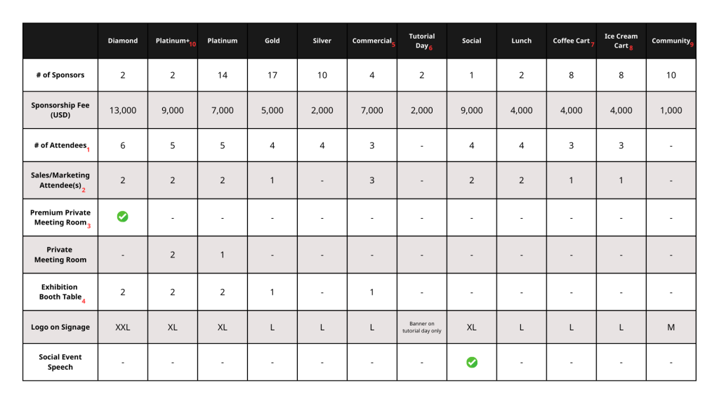 Sponsors are not allowed to bring in their own booth but will be provided with one or two 46W x 180L x 76H cm table(s), depending on the committed sponsorship tier. One stand-up banner is allowed per sponsor to place next to the booth. Sponsor is responsible for providing this banner. - Commercial Sponsor: